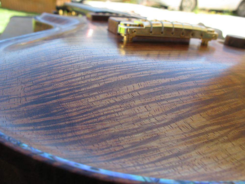 - celtic tribal inlay 11,12,13 frets, pickup covers, truss rod cover,control knobs custom made of flamed Koa with Celtic inlays